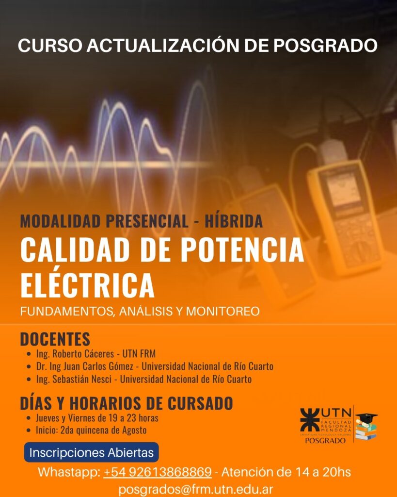 Inicio: 20 de agosto Inscripciones entre el 24/06 y el 30/07 Mayor información en: https://www.frp.utn.edu.ar/info2/?page_id=27362