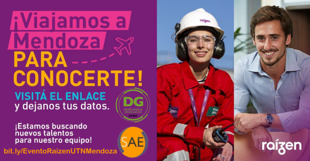 La Empresa raízen (licenciataria de la marca Shell, la Secretaría de Asuntos Estudiantiles y la Dirección de Graduadas y Graduados de la Facultad Regional Mendoza invitan a Evento Raizen en el Auditorio FRM el día Viernes 26/08 a las 17:00 hs a: *Graduadas/os de Ing. Química principalmente. *En segundo lugar pueden ser graduadas/os de Ing. Electromecánica, […]