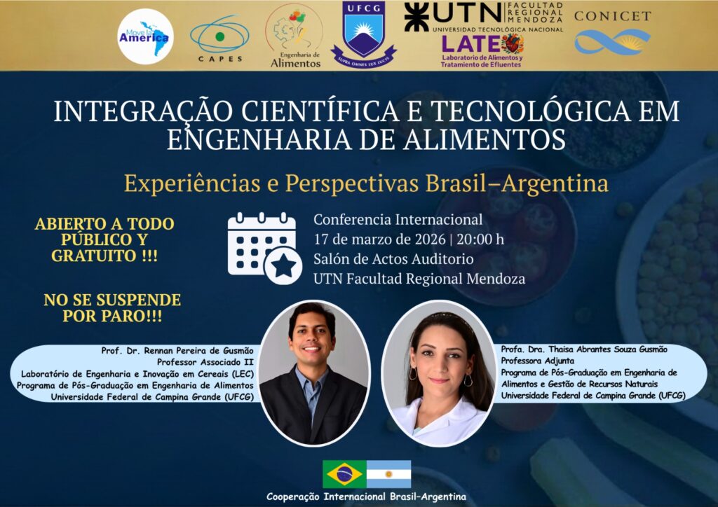 La UTN Facultad Regional Mendoza tendrá el honor de recibir, el próximo 17 de marzo de 2026 a las 20:00 h, a dos prestigiosos investigadores de la Universidad Federal de Campina Grande (UFCG) de Brasil, […]