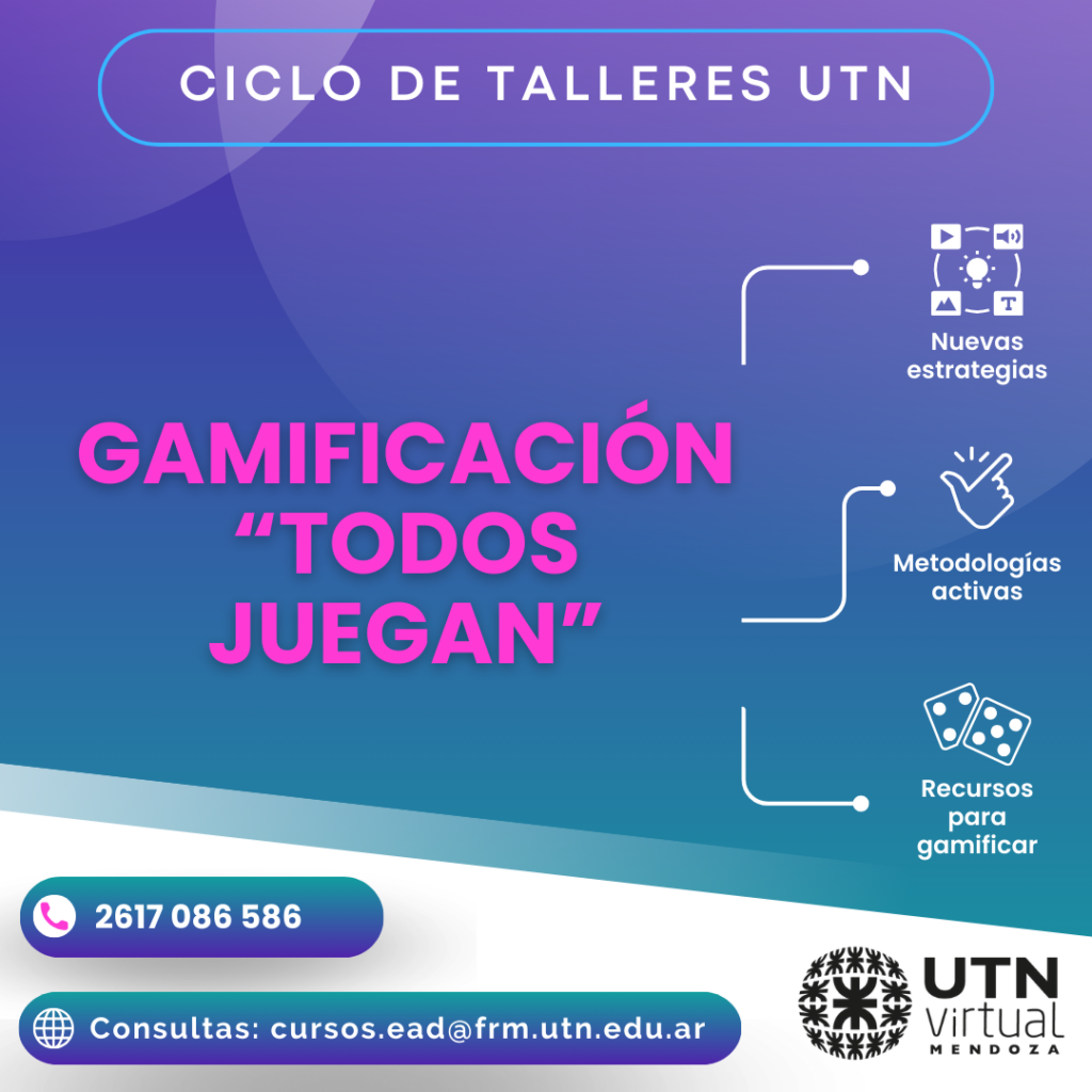Ciclo de Talleres en UTN Virtual Mendoza 🔸🔷Gamificación “Todos Juegan”.🔷🔸 Abrimos las inscripciones para la segunda edición de nuestros talleres. La gamificación es un enfoque pedagógico que […]