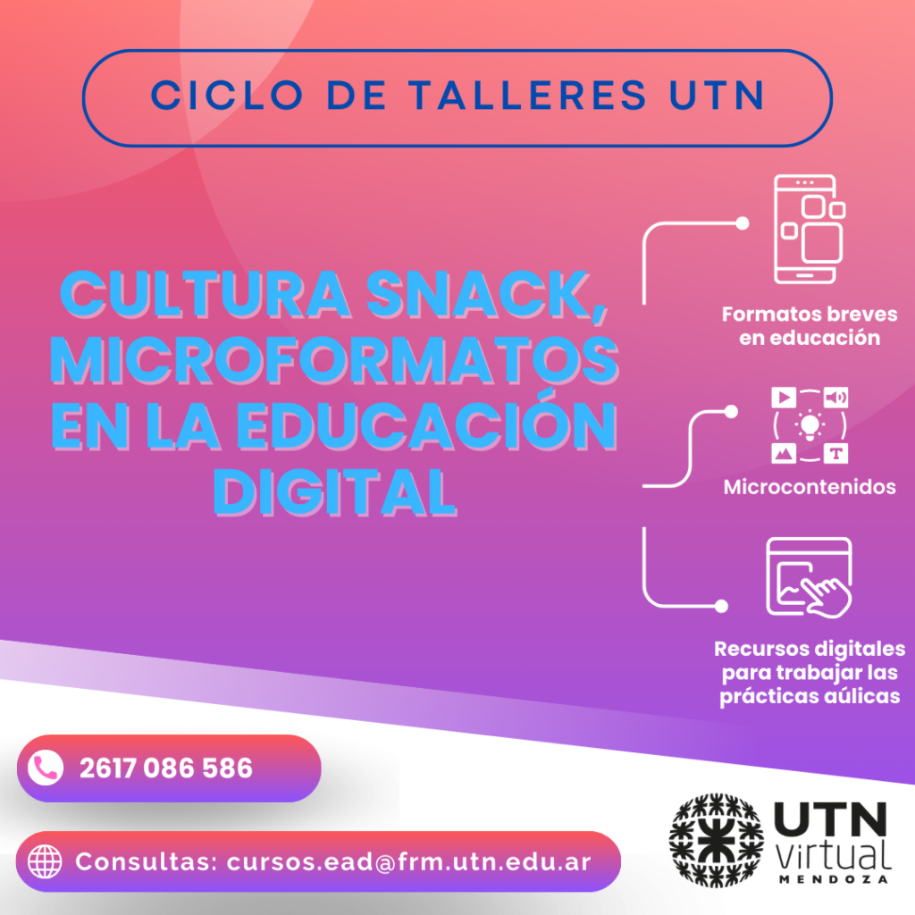 📣Ciclo de Talleres en UTN Virtual Mendoza 🔸🔷”Cultura Snack: Microformatos en la educación digital”.🔷🔸 Abrimos las inscripciones para la segunda edición de nuestros talleres. Cultura Snack está orientada a la […]