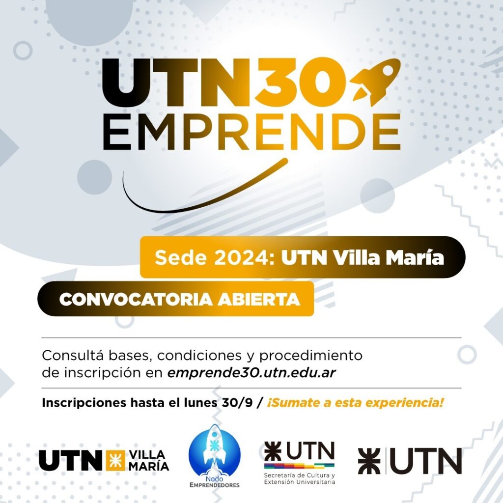 CONVOCATORIA “UTN 30 EMPRENDE” – INSCRIPCIÓN HASTA EL 30/09/24