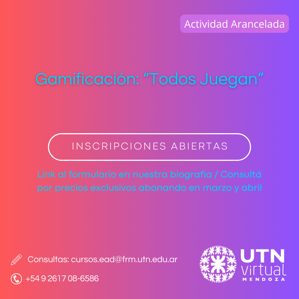 CICLO DE TALLERES EN UTN VIRTUAL MENDOZA – GAMIFICACIÓN: “TODOS JUEGAN”