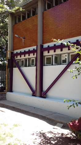 • Mejora de la capacidad sísmica de columnas de hormigón armado mediante confinamiento con fibra de carbono, parte del cual se ejecutó con la escuela en funcionamiento.