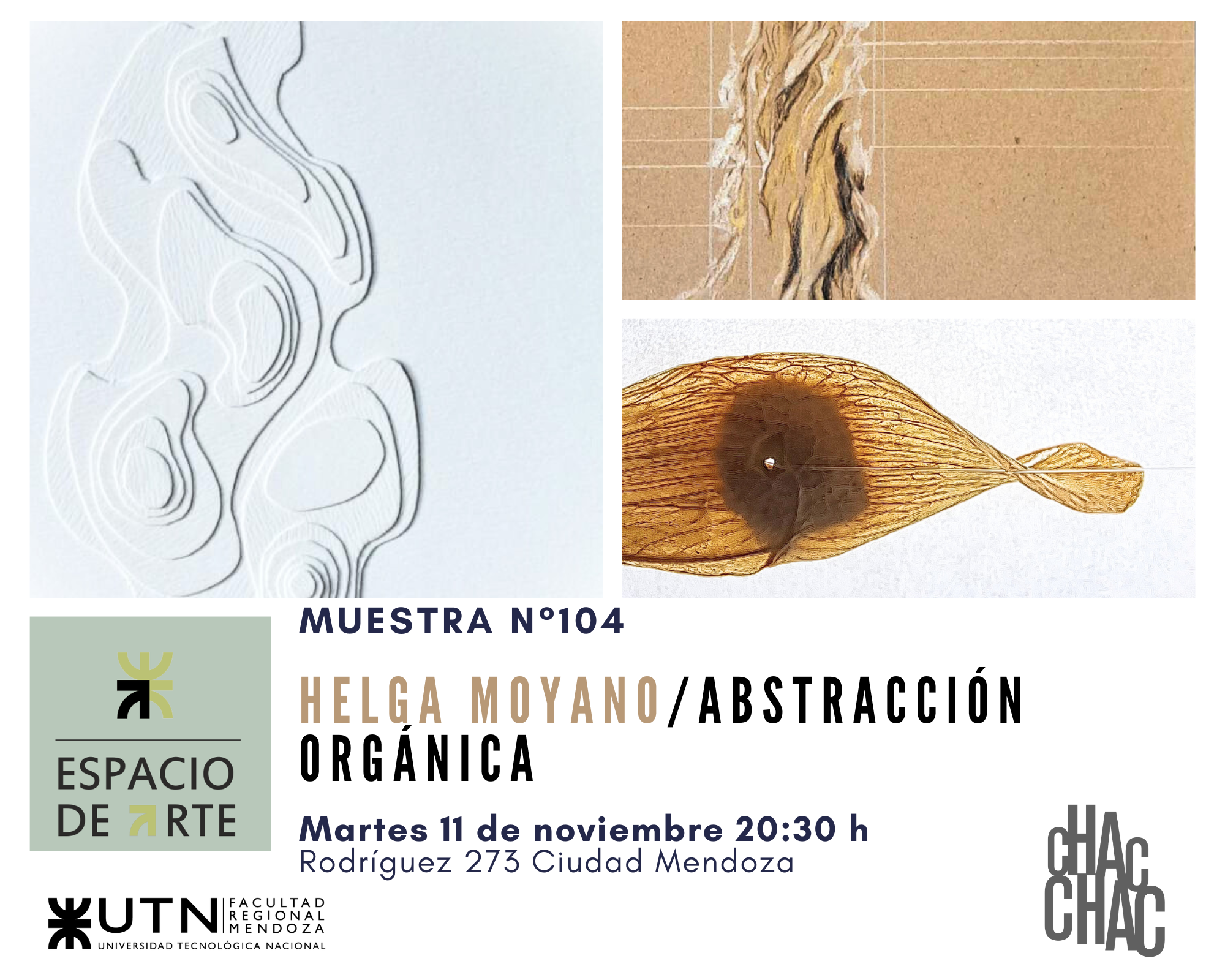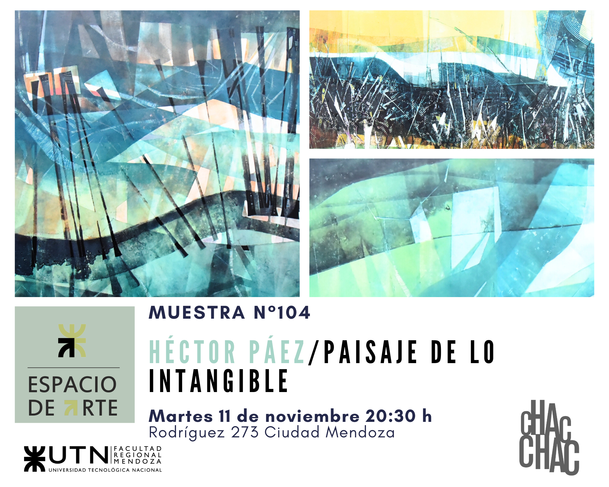 Finalizamos el ciclo expositivo del año, en este caso celebramos la inauguración de la MUESTRA N°104 de este Espacio de Arte. Presentamos las muestras de los artistas seleccionados por convocatoria “PAISAJES DE LO INTANGIBLE” de HÉCTOR PÁEZ, ”ABSTRACCIÓN ORGÁNICA” de HELGA MOYANO, ”BARDOSCURO” de GABRIEL FERREYRA, ”EL CAMINO DE LAS PARTÍCULAS” de AGUSTÍN MARTÍNEZ, así como las muestras de los artistas invitados “LA CÁMARA LÚCIDA” del TALLER DE FOTOGRAFÍA DE LA UTN y “MÁS ALLA DE LA MATRIZ” EXPOSICIÓN DE GRABADOS DE ESTUDIANTES DE 4°AMB-COLEGIO UNIVERSITARIO CENTRAL UNCUYO.