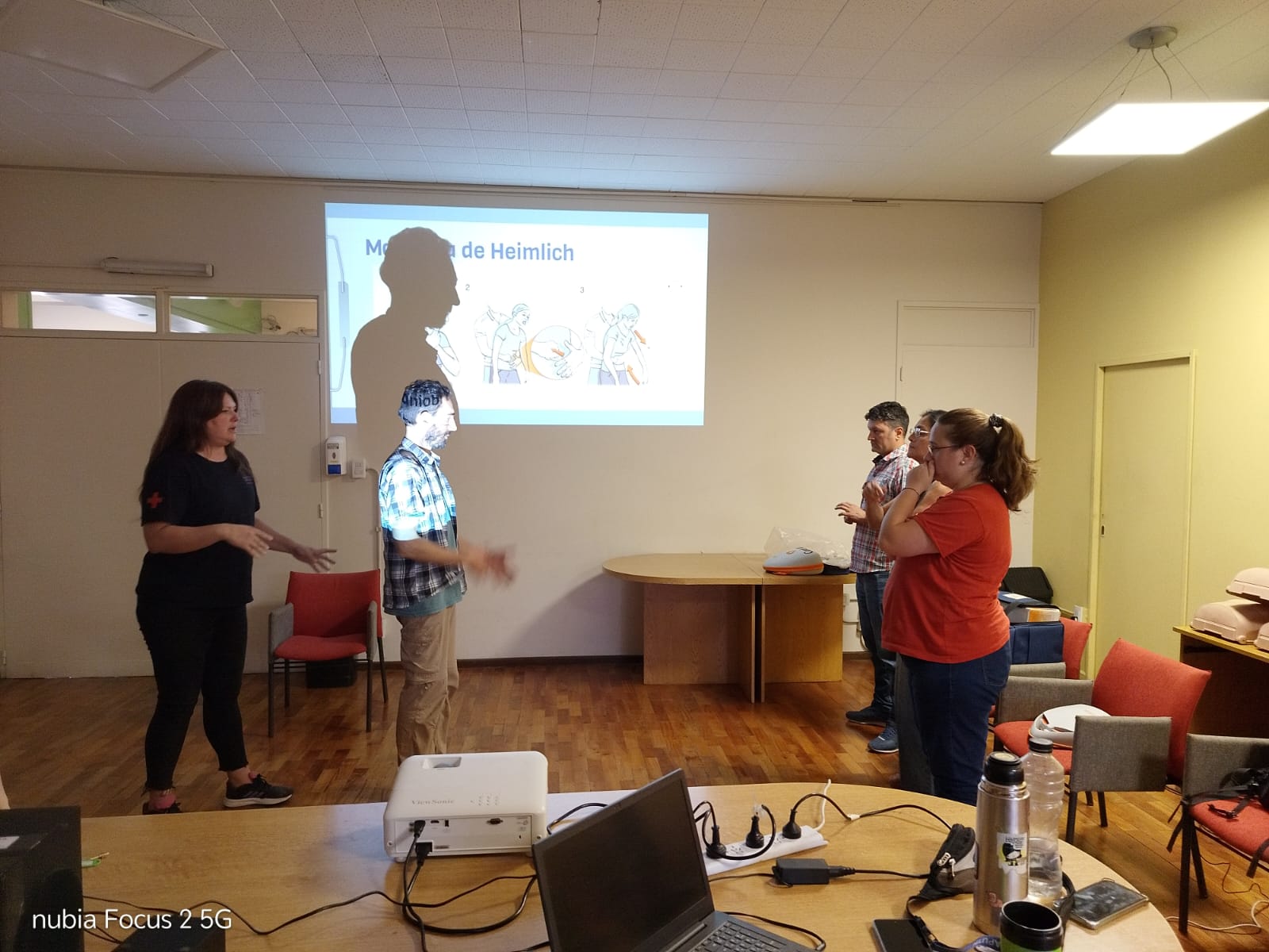 En términos generales, el taller abordó la importancia de conocer el orden de las acciones a seguir, las maniobras de RCP y el uso de un DEA (desfibrilador externo automático).