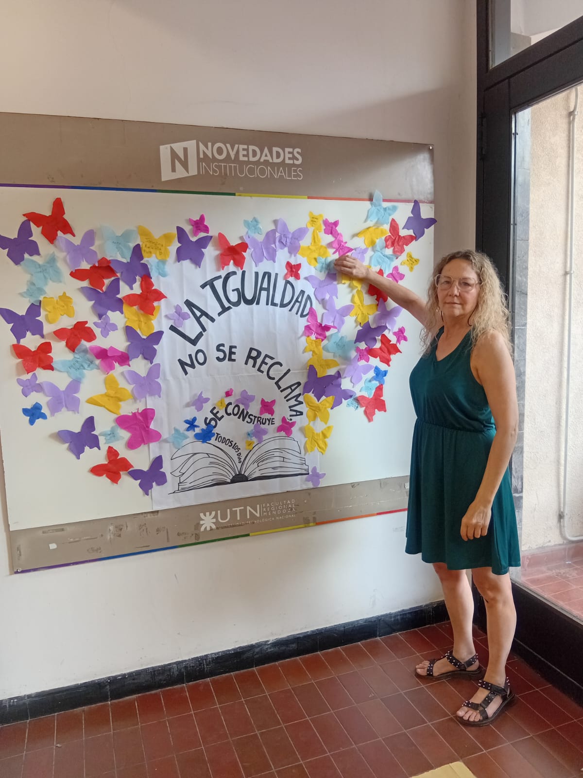 Con la intención de concientizar y visibilizar esta conmemoración, se confeccionó un poster en la entrada de la facultad, con la inscripción: “la igualdad no se reclama”. La frase está rodeada de mariposas de papel, que pegaron distintos integrantes de la facultad.