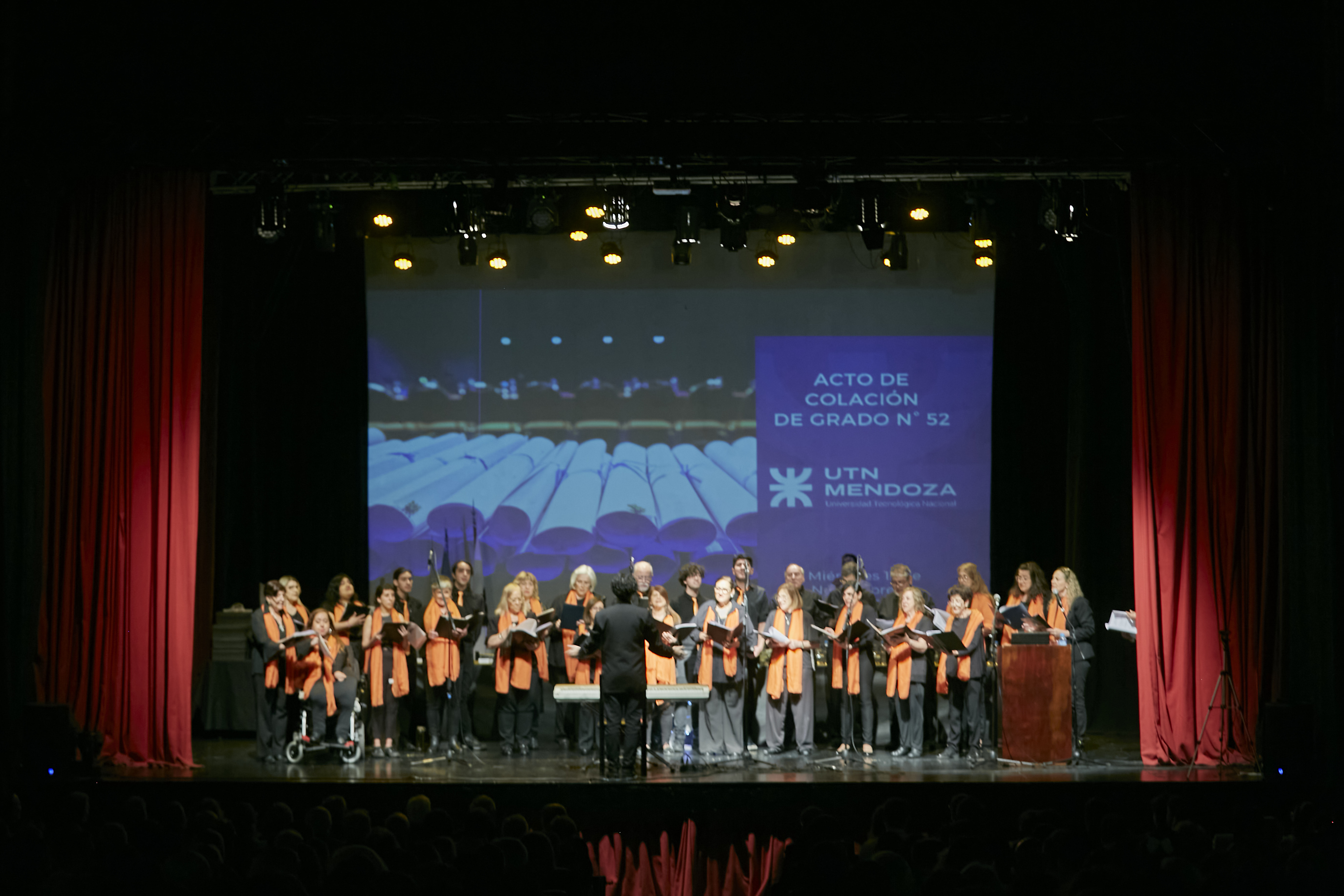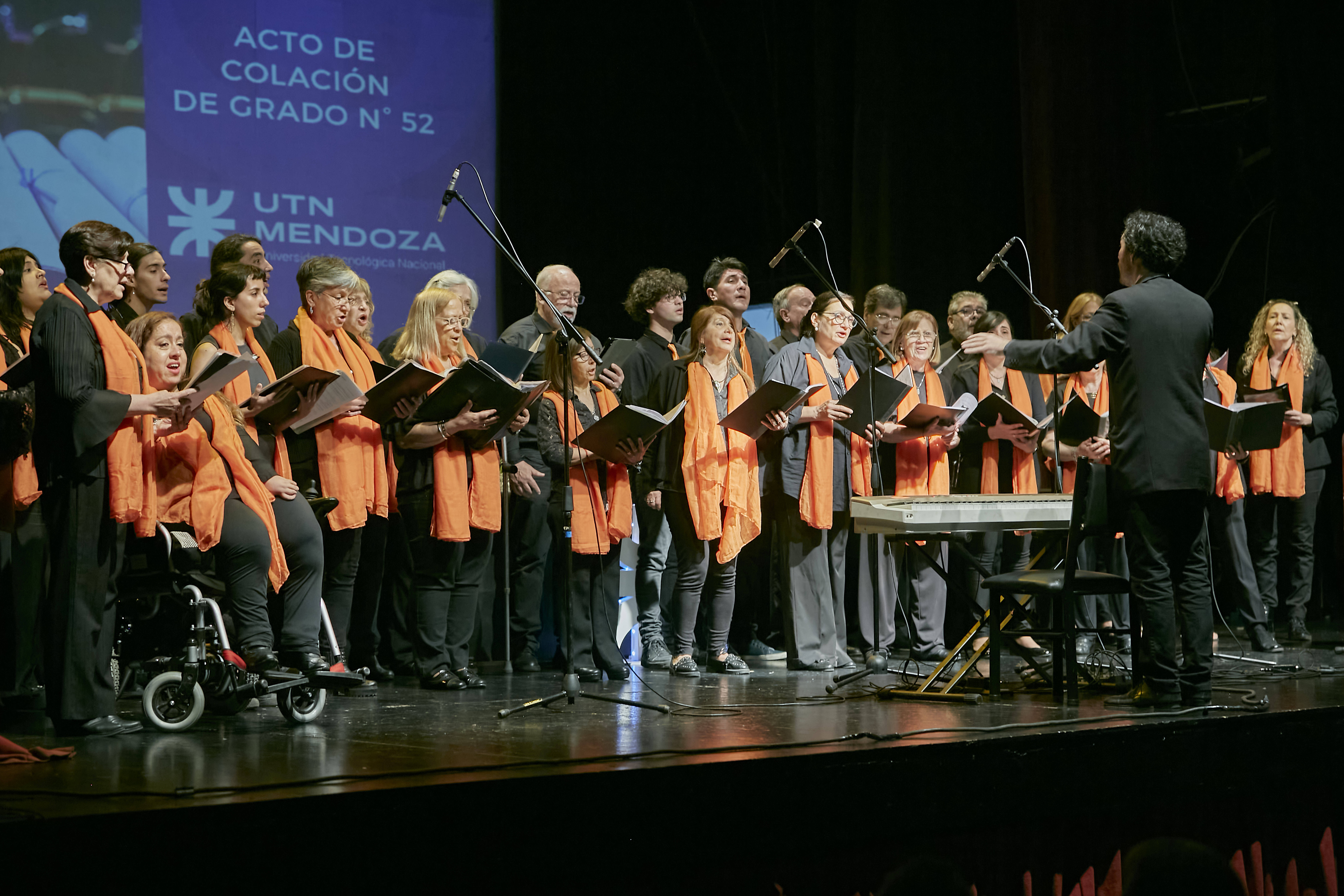 Antes del acto académico, se disfrutó de la actuación del Coro UTN FRM, dirigido por Joaquín Martínez Dávila; que interpretó las canciones “Desarma y Sangra” (Charly García) y “Tonada del Médano” (Analía Garcetti); con arreglos corales del Director.