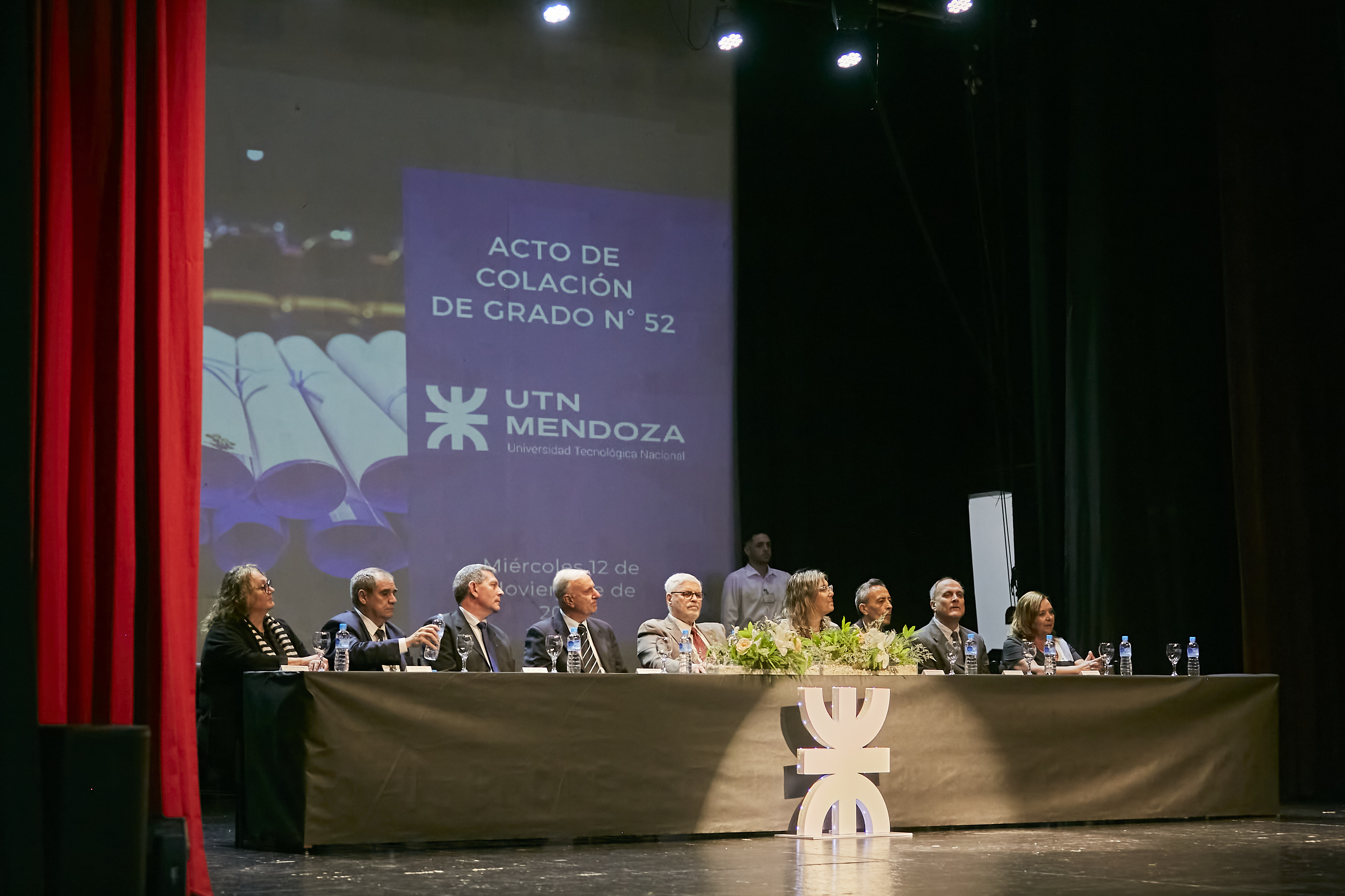 La mesa académica estuvo presidida por el señor decano de la Facultad Regional Mendoza, Esp. Ing. José Balacco; e integrada por: Vicedecano UTN FRM, Dr. Ing. Miguel Tornello, Decana de la Facultad de Educación de la UNCuyo, Dra. Ana María Lourdes Sisti; Director del Departamento de Ingeniería Civil, Ing. Daniel Pagano; Director del Departamento de Ingeniería Electromecánica, Ing. Roberto Martínez; en representación del Director del Departamento de Ingeniería Electrónica, el Secretario Ing. David Saldeña; Directora del Departamento de Ingeniería Química, Ing. Viviana Brusadin; Director del Departamento de Ingeniería en Sistemas de Información, Mgter. Lic. Alejandro Vázquez y Directora del Departamento de Materias Básicas, Mgter. Esp. Sandra Segura.